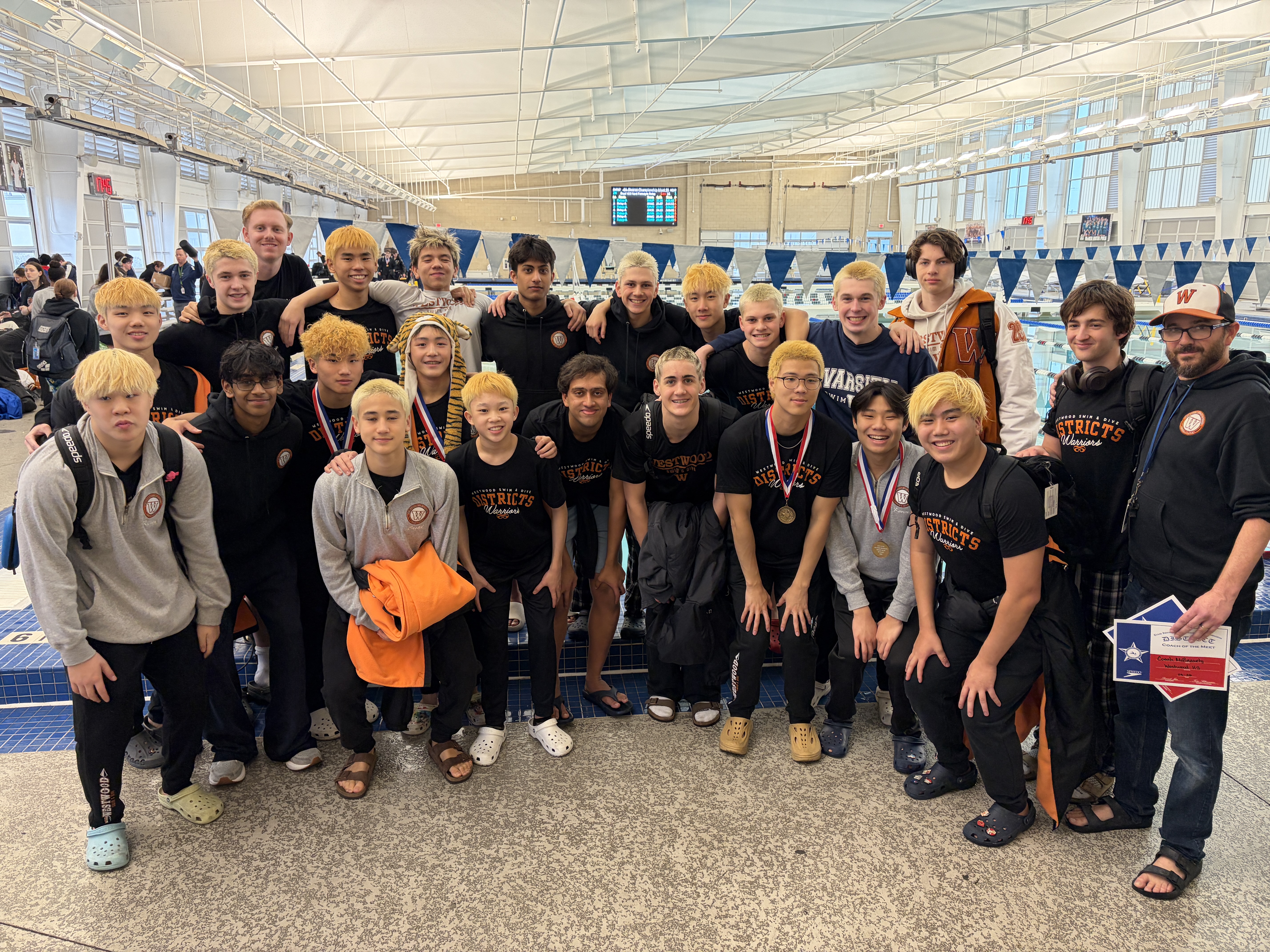 With more than twenty-five years of winning tradition, the Westwood Varsity Swimming and Diving Team is a group of athletes dedicated to their Team, their School and their Sport. Challenging workouts are mixed with team-focused community activities, fund-raisers, trips, and the occasional party.