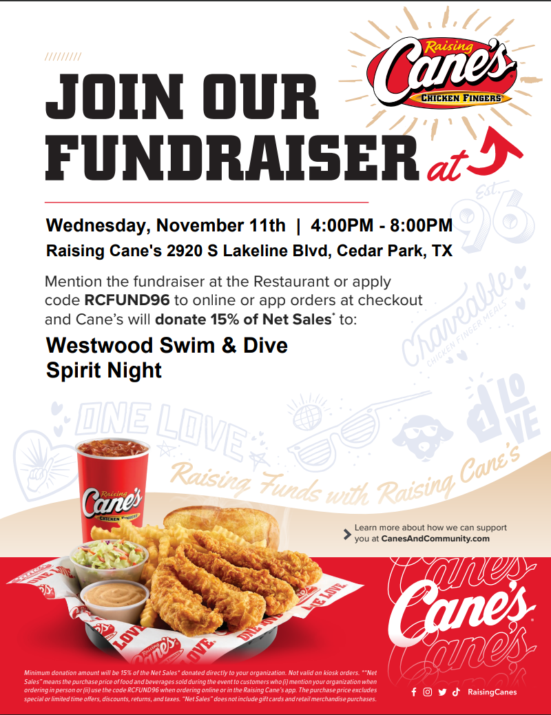 Yum! Yum! Who doesn't like chicken and bread and cole slaw? Save some time on dinner tonight and earn some cash for our swimmers! 15% of net sales when mentioning Westwood Swim and Dive OR using the code RCFUND96 when ordering online creates a win-win for your family and your favorite swim team! |